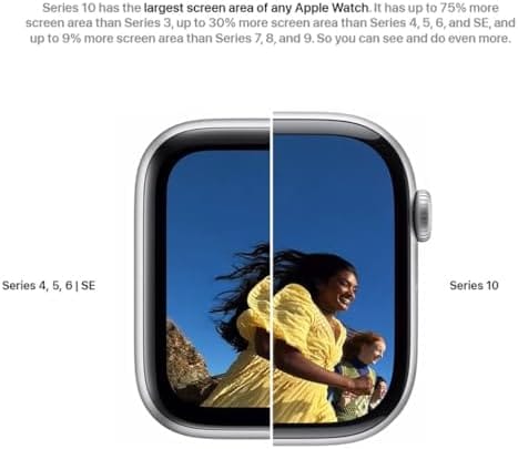 | Feature | WHY APPLE WATCH SERIES 10—Bigger display with up to 30 percent more screen area. A thinner, lighter, and more comfortable design. Advanced health and fitness features provide invaluable insights. Safety features connect you to help when you need it. Faster charging gives you 80 percent battery in about 30 minutes. |