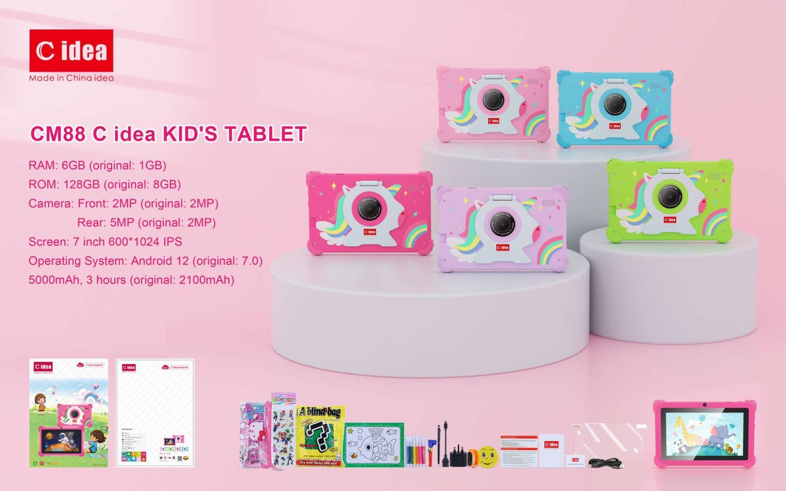 The C idea CM88 7-Inch Tablet is an excellent blend of portability, performance, and practicality. Whether it’s for learning, entertainment, or staying connected, this sleek and stylish tablet is built to meet your needs. Its kid-friendly design and thoughtful features make it a perfect addition to your household.